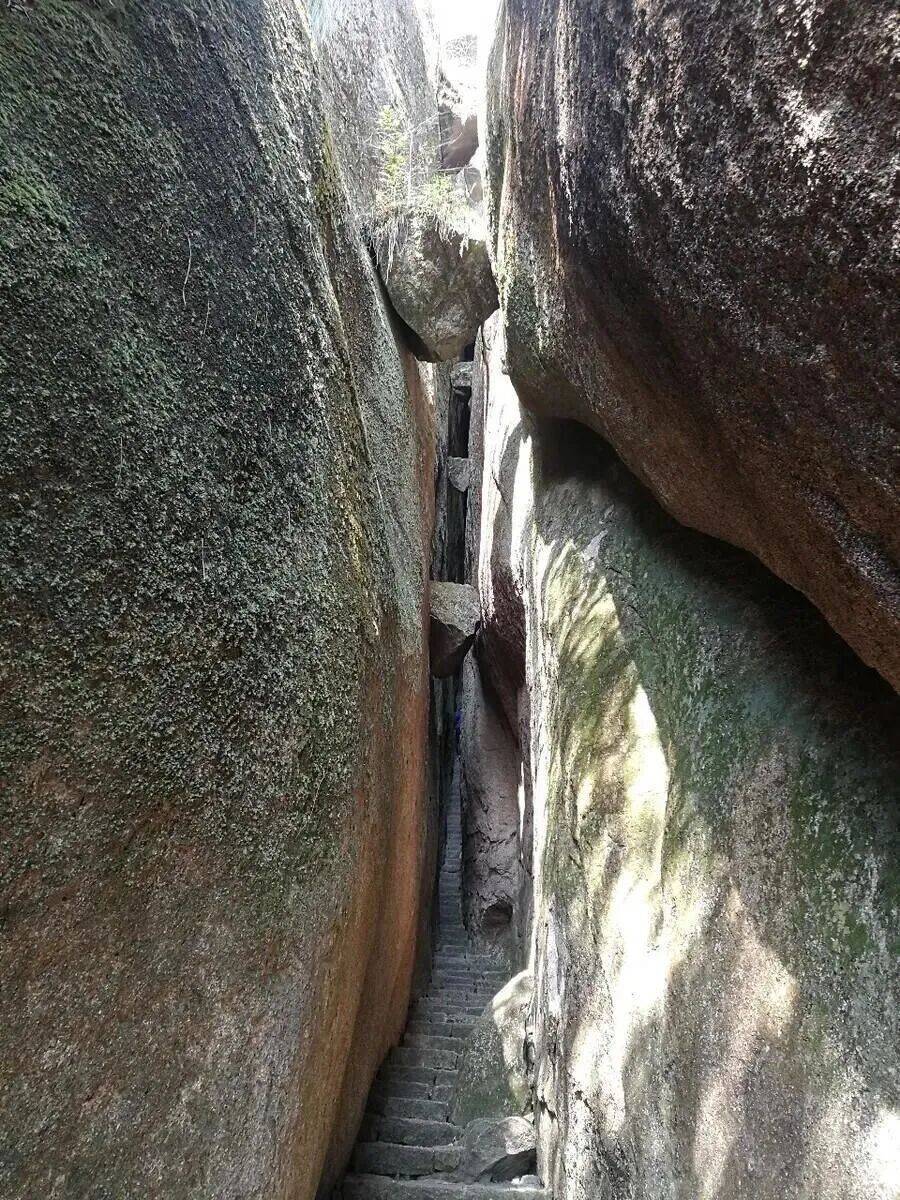 太姥山“一线天”最窄处仅约20公分,景区在入口处设有安全提示牌,标明“可能有卡住风险”,但未设置强制通行限制。
