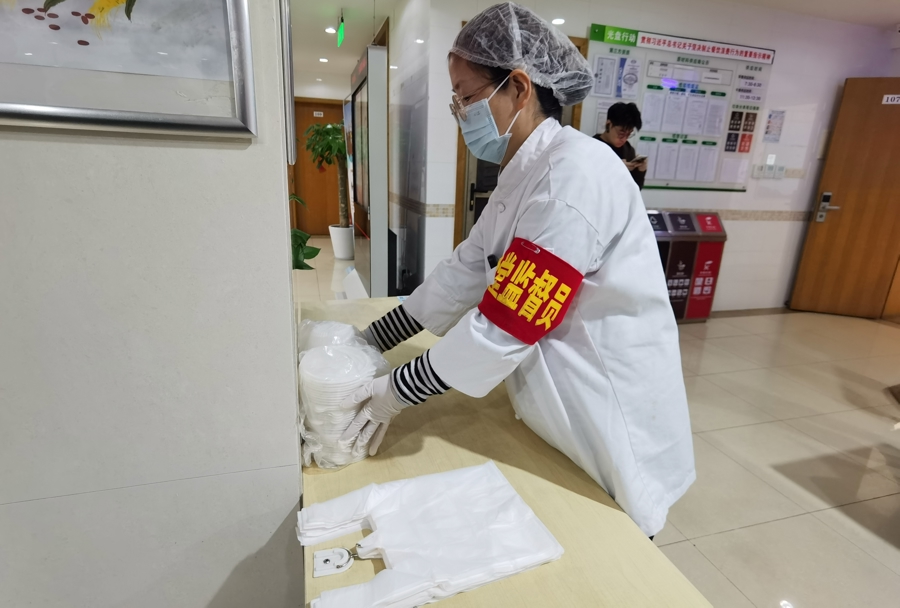 今天(3月31日)中午,记者在嘉兴路街道办事处的食堂窗口,就遇到了这样的“一点一滴”。食堂开辟了“小份菜”专窗和独立的打包区域,引导大家适量取餐或带走剩菜剩饭,减少饭菜太多吃不下而导致的浪费和污染。