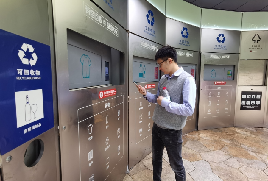 小区居民主导设计的智能垃圾箱房,投放可回收物可直接变现。 陈玺撼摄