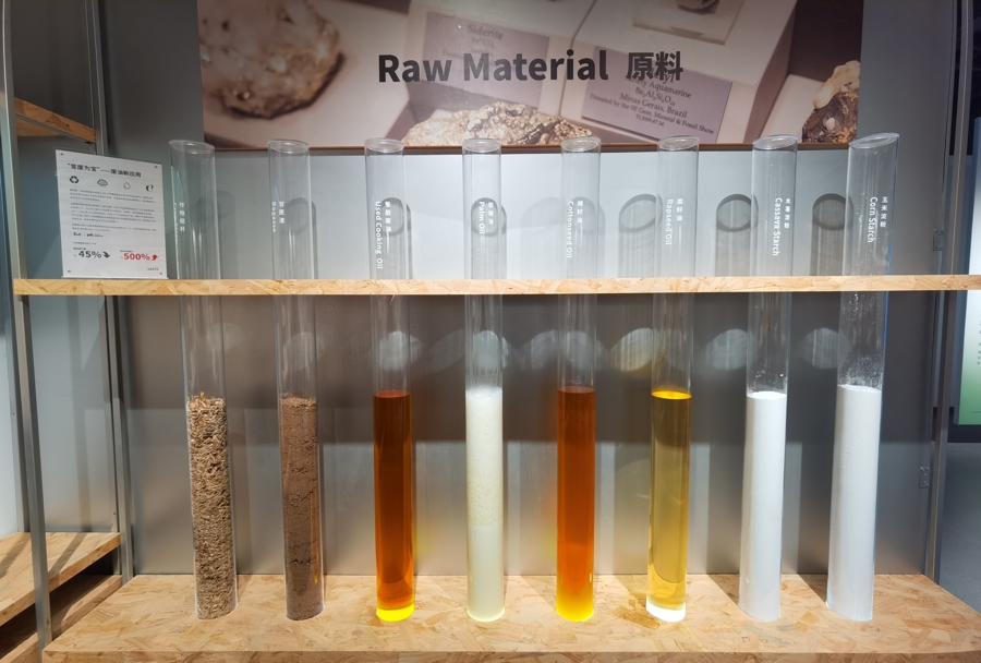 上海蓝晶微生物科技有限公司的产品展示大厅内,未来材料业务线高级研发工程师李生辉指着一堆餐饮用具说:“它们的原料都是餐厨废弃油脂,产生于餐饮业,又通过资源再生利用,回到餐饮业,这是一个很有趣也很有意义的闭环。”
