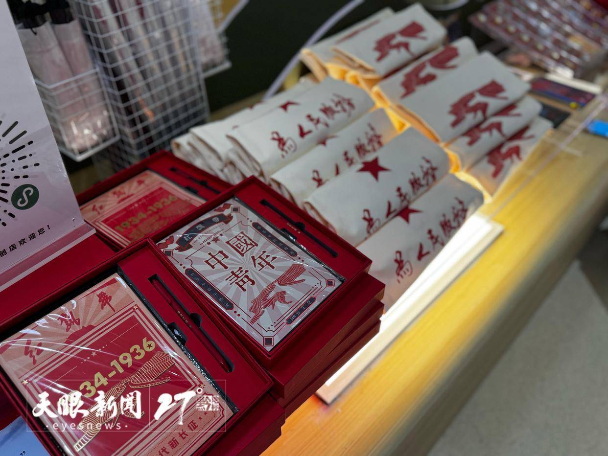 在这个国庆中秋假期,除了贵州特色文创产品,各类红色文创销售也格外吸睛。在贵州长征文化数字艺术馆(红飘带)内,以“红飘带”建筑外观为设计灵感,结合现代设计语言,将红色故事融入徽章、书签、马灯、搪瓷杯等载体的文创产品,赢得了游客青睐。