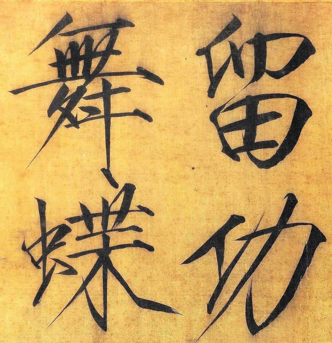 宋徽宗这“舞”字,把舞蹈的动感、韵律全写进去了。他不是在写字,是在用笔墨给文字注入灵魂,让每个笔画都活过来,在纸上尽情摇摆。这哪是书法?分明是一场无声的舞蹈盛宴,让人看得心痒痒,恨不得也跳上两段!
